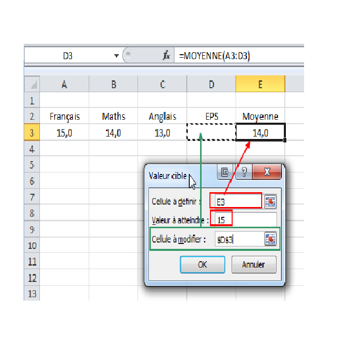 Outils d'analyses de simulation : Valeur Cible, Solver, ...